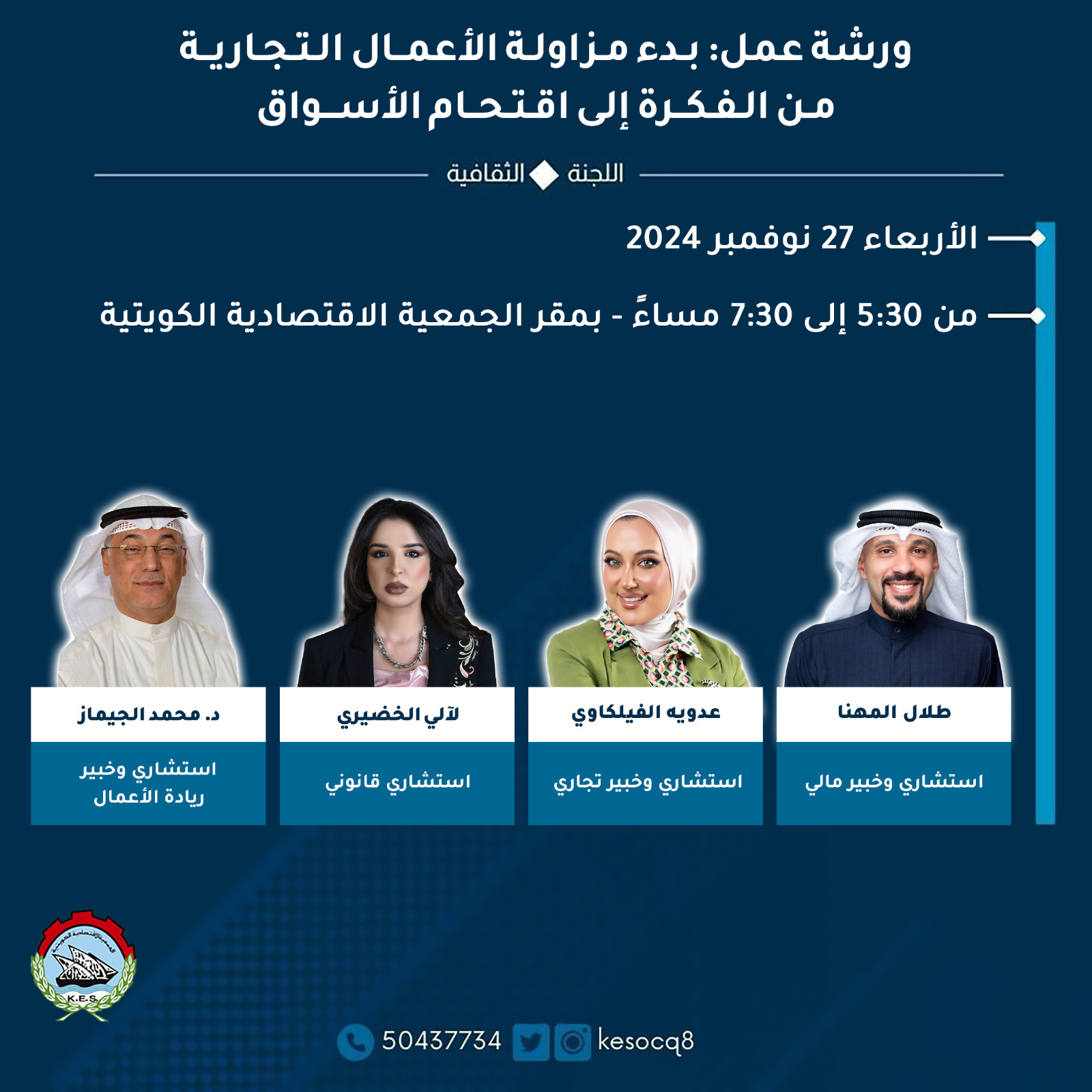 وإدراكاً منها لأهمية العنصر البشري، تنظم الجمعية الاقتصادية الكويتية العديد من الدورات التدريبية الفنية والإدارية والتخصصية والتي تهم شريحة كبيرة من أعضاء الجمعية وأفراد المجتمع من الناحية الاقتصادية. وقد استفاد عدد كبير من هذه الدورات نظراً لتنوع منهجها التدريبي، حيث تطمح الجمعية إلى الارتقاء بالبرامج التدريبية والعمل على إنشاء مركز تدريب تابع للجمعية الاقتصادية الكويتية ، ويتراس هذه اللجنة السيد / محمد العريان